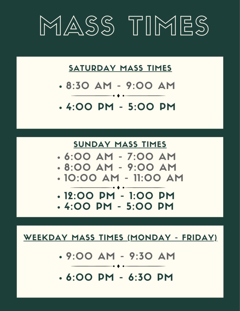 - Print and Bring the form to the parish office during office hours (Monday – Friday, 10:00 AM – 4:30 PM).